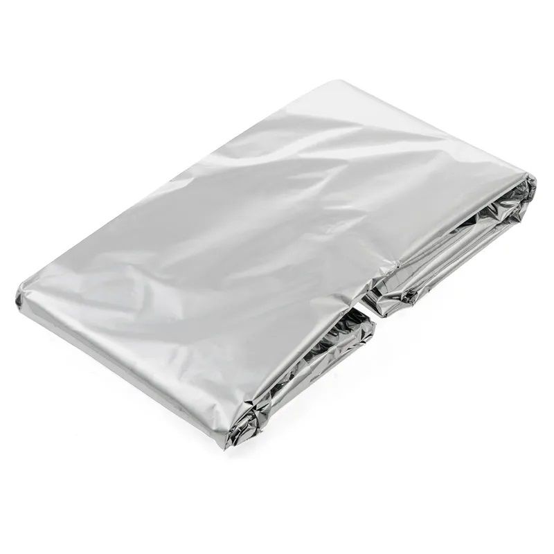 Cobertor térmico aluminizado utilizado para manutenção do calor corpóreo na prevenção do estado de choque ou queimaduras.